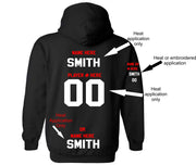 Name and Number Applications to hoodies, polo, jackets and dryland.